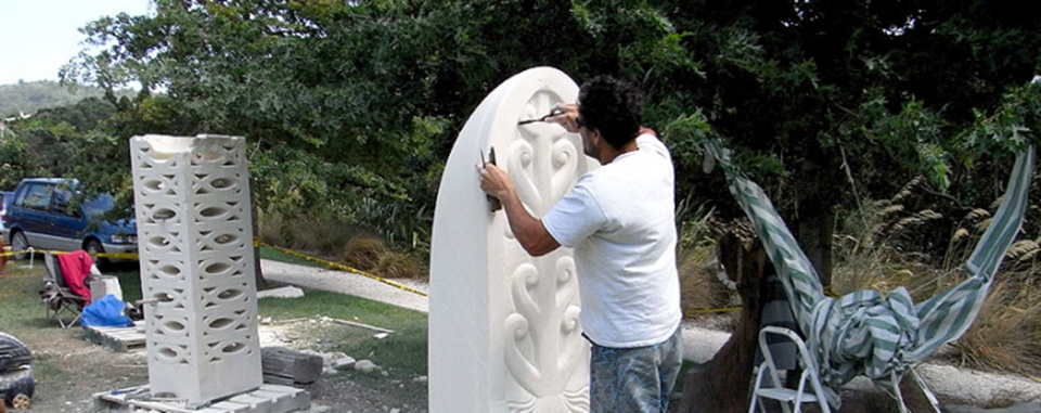 Aaron Hoskins has completed a large commissioned work and finds it very interesting to meet his clients’ wishes. He is creating a series of carved and painted oars that are based on his own historical Maori research on Northland, enjoying the combination of Maori and European influences and reflecting on New Zealand history.